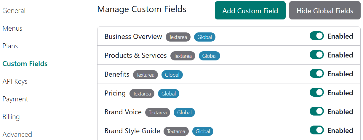 DESCRIPTION: With the recent release of Global Custom Fields, Partners can now disable those fields from Websites > Properties > Custom Fields, effectively hiding irrelevant fields from their users' profiles.